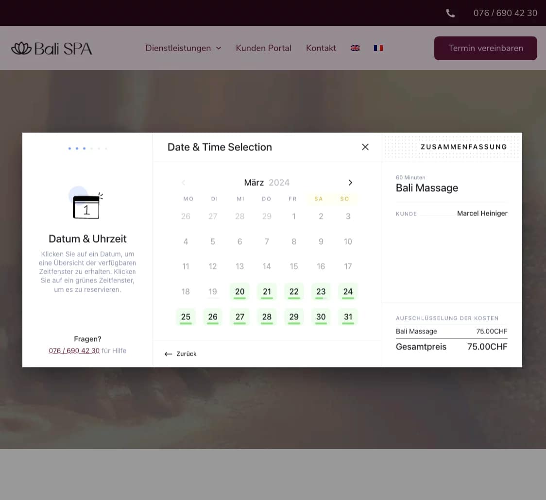 Lorsque je suis arrivée d’Indonésie en Suisse il y a trois ans et que j’ai ouvert mon propre studio de massage, BaliSPA, en janvier 2021, j’ai dû faire face à de nombreux défis. Non seulement la barrière de la langue due à mes cours d’allemand, mais aussi mes horaires de travail irréguliers le soir rendaient difficile le fait d’être joignable par mes clients. Grâce à la solution de webdev4u, j’ai toutefois trouvé un moyen de surmonter ces obstacles.